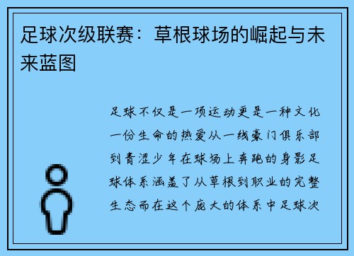 足球不仅是一项运动,更是一种文化、一份生命的热爱。从一线豪门俱乐部到青涩少年在球场上奔跑的身影,足球体系涵盖了从草根到职业的完整生态。而在这个庞大的体系中,足球次级联赛扮演着极其关键的角色,被视作连接...